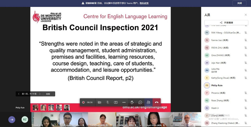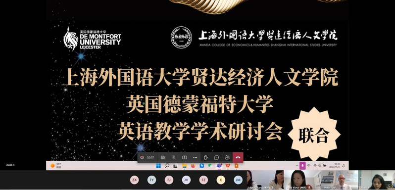 为进一步深化大学英语教学改革,巩固和提升必赢官网英语课程教学效果,11月3日下午,英国德蒙福特大学和上外贤达学院联合举办了一场线上英语教学学术研讨会。出席教学研讨会的嘉宾有德蒙福特大学语言学习中心总监Philip Rule教授、上外贤达学院国际教育学院袁语副院长、国际交流合作处王婷副处长、留学服务办公室郭海红副主任,以及来自国教、国交及外语学院的优秀教师代表。本次研讨会由国交处张静老师主持,18位与会教师全程参与。