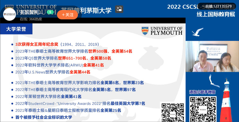 11月19日,中国教育部留学服务中心组织举办了2022年英国高等教育文凭项目海外高校线上交流会,本次交流会上有来自英国、美国、澳大利亚、新西兰、加拿大、新加坡和匈牙利7个国家的40余所海外大学分成三个场次进行了线上直播交流。
