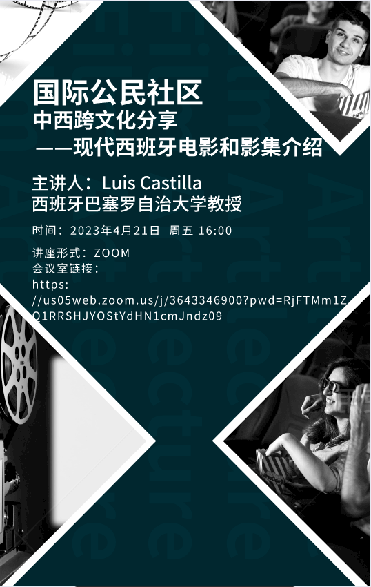 2023年4月21日下午,由必赢官网国际交流合作处与学生管理服务中心联合举办的“国际公民社区”系列主题文化分享之《中西跨文化分享——现代西班牙电影和影集介绍》顺利开展。