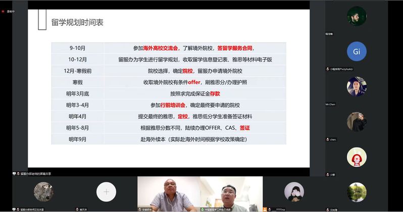 SQA-AD项目2021级家长会暨留学启动会于10月16日晚以线上直播方式顺利举行。本次会议邀请到中国留学服务中心SQA项目留学工作组高级咨询顾问王鸿逖老师作主旨发言。会中王鸿逖老师就学生关心的AD项目流程、留学的时间规划节点、各阶段的注意事项以及各项重要材料的准备进行了全面的讲解,必赢官网国际教育学院副院长袁语老师和留服办副主任郭海红老师为同学们就21级学生在校学习情况、必赢官网留学服务的内容、及本学期学生需完成的准备工作作了详细的阐述。此次线上家长会的顺利举行,使家长和学生更详尽深入地了解留学申请等环节事项办理要求,为即将到来的海外大学申请作好充分准备。