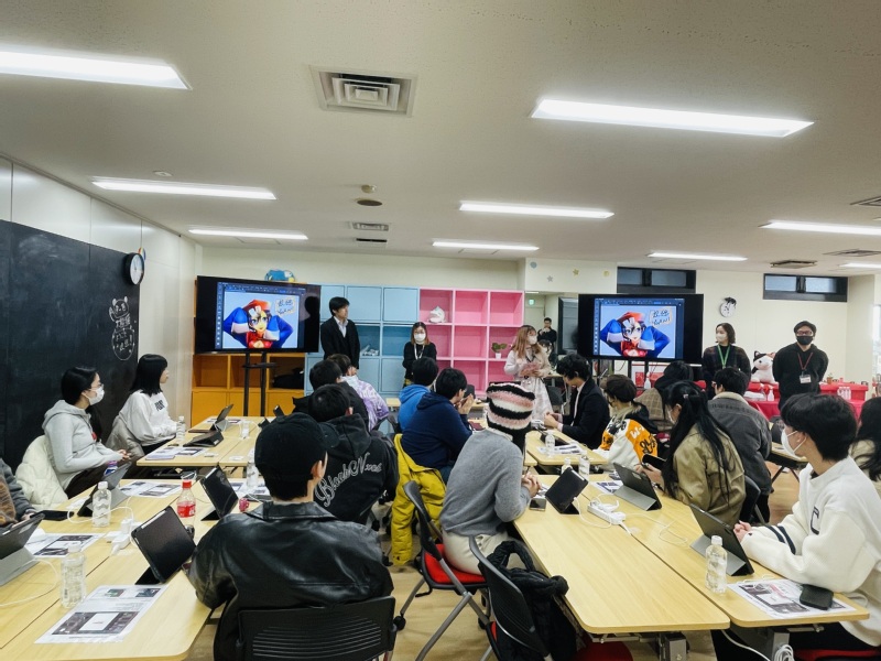 在代代木多位资深讲师的专业指导和贤达带队教师的全面协助下,此次研学针对学生个性、学习偏好、从业志向等定制了个性化课程,使学生能够在短时间内打开思维创作意识,提高专业技能。研学首日,中日师生互相交流动漫文化,参观了日本代代木动画学院大阪分校教学空间,深入了解了日本漫画、声优创作等的文化背景和产业现状,并通过教师分享学习了诸多漫画制作技巧和经验。此外,该校还特别为贤达学子增设了观摩学习动画制作基本流程——分镜、视频、设定、拍摄、音响的课程等。