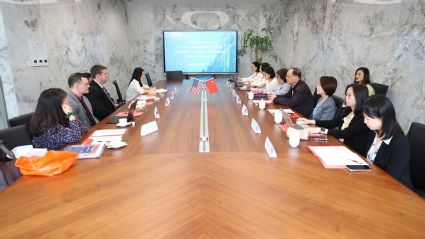 3月26日,美国伊利诺伊大学-香槟分校(以下简称UIUC)全球教育与培训部主任Dr. Matt Rosenstein,全球教育与培训部中国代表王年华先生,全球教育与培训部副主任Dr. Amy Chen, Mr. Grant Brewer以及UIUC高级代表翁蓊女士来访必赢官网崇明校区。陆朴鸣监事长亲切会见来访贵宾,副校长许星,副校长马艳红,副校长季萍,校长助理陈娴,国际交流合作处处长王婷、留学服务办公室副主任郭海红以及国际交流合作处外事主管张静陪同接待并参与了会谈,双方院校就UIUC暑期教师培训类项目优化、师生交流等合作意向进行了友好的深入探讨。