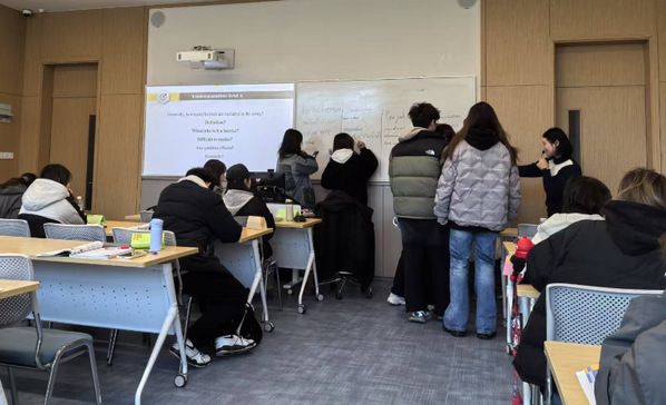 语言学习中心以“创新教学范式,深化教研融合”为目标,成功开展了15场示范课展示活动。各课程均采用了“三分课堂”的教学新形态,不断创新教学方法。如《跨文化商务沟通》课程以“泰国商务礼仪”为主题,结合“一带一路”背景,通过中泰谈判模拟、合十礼层级应用演示等活动,引导学生理解文化差异;《英语戏剧赏析》课程借助Deepseek辅助教学系统,通过中英版话剧片段对比、现场台词翻译实践及角色扮演,构建了“文本分析-文化对比-实践演绎”的立体课堂;《实用英语写作》课程借助“盲盒挑战”活动、数据驱动模式及分层任务的设定,打破了传统写作课的静态模式,现场互动热烈。