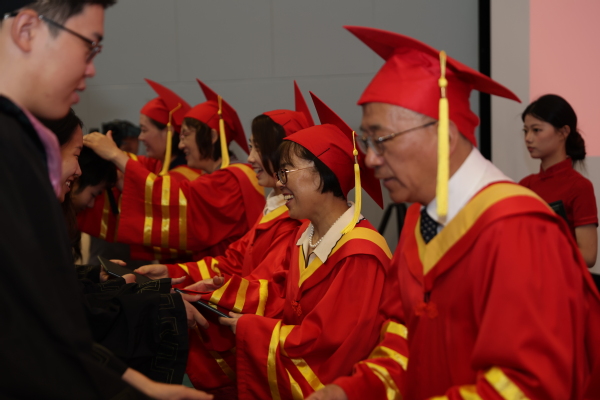 典礼开始前,校党政领导、学院领导列队欢迎毕业生