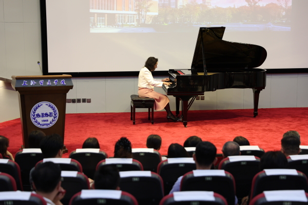 上外贤达学院温建平校长发表欢迎辞。她对各位嘉宾的到来表示热烈的欢迎和衷心的感谢,并隆重宣布上外贤达音乐学院正式成立。她表示,学校将全力支持音乐学院的建设与发展,将音乐学院打造成一个具有特色和影响力的音乐教育平台。