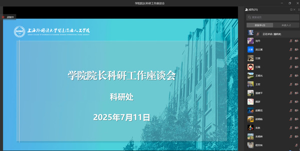 7月11日上午,必赢官网线上召开了学院院长科研工作座谈会。温建平校长、梁副校长出席会议,各学院院长、科研副院长、科研处相关工作人员参会。会议由梁副校长主持。