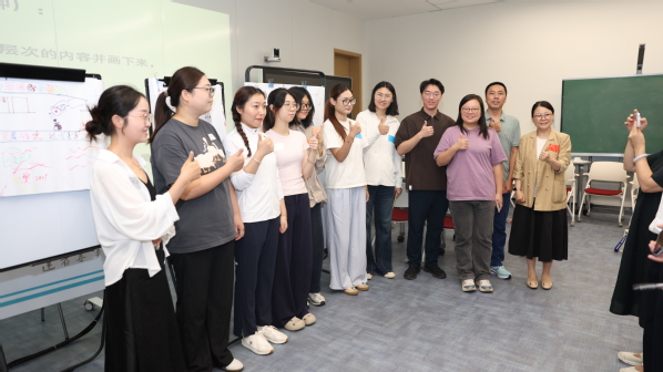 培训尾声, 教发中心主任助理王钰倩对2025年秋季入职培训第一阶段整体情况进行总结概述,随后,三名表现突出学员——商学院教师郑雅妮、艺传学院教师李璐扬、国教学院干事陈秋悦依次登台进行说课或演讲展示,分享培训收获。