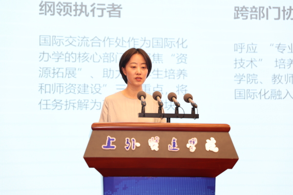 校长助理、国际交流学院院长陈娴结合学院的人才培养国际化目标,从培养体系搭建、第二课堂活动、海外合作办学、校企合作等方面展现了学院对学生的个性化培养与服务。