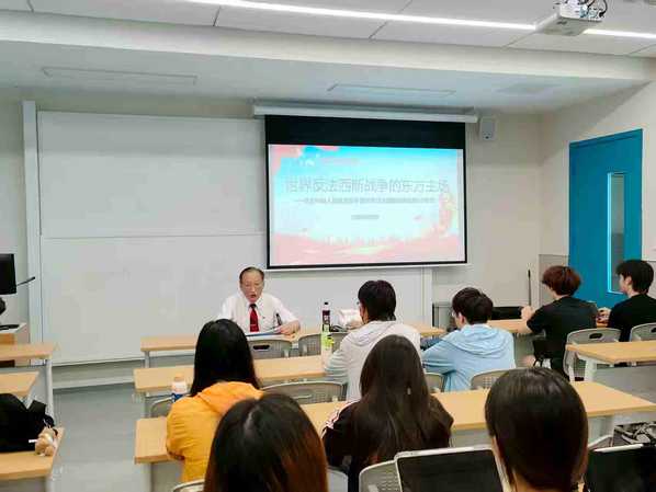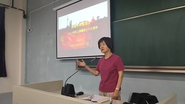 在中国近现代史纲要课堂,原上海《浦东开发》杂志总编辑王建刚,以“世界反法西斯战争的东方主战场”为题,讲授了伟大建党精神中的抗战精神。《解放日报》范长江新闻奖获得者李文祺,,以抗战名记者陆诒为线索,讲述了中国共产党是如何成为抗日战争的中流砥柱,紧扣“纪念抗日战争胜利80周年”主题。江苏大学中国历史教研室原主任、上海东方讲坛原讲师团成员、全国关心下一代先进工作者邓玉平,以“英雄丰碑耀浦江-纪念上海解放76周年”为题,讲述了在解放上海的战斗中,为了保护上海的城市建筑,解放军战士英勇战斗的动人故事。原上海市崇明县堡镇中学校长、市特级校长陈伟安,以“铭记历史、砥砺前行”为题,讲述了在民族危亡的时刻,无数革命英雄为中华民族的解放英勇奋斗的事迹。