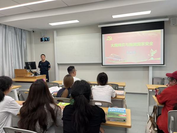 在国家安全教育课堂,国防大学政治学院政治工作系原副主任、研究生导师吴庆龙大校,以“大国博弈与国家安全”为题,阐释了“大国”的内涵,剖析了在中美欧俄多方博弈的背景下,中国应如何有效维护国家安全。