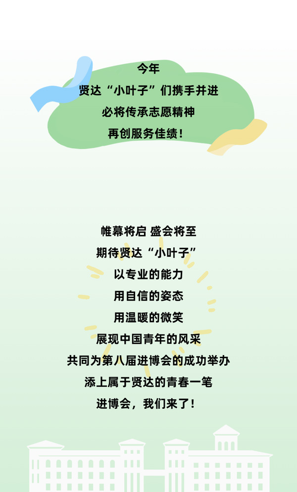 以青春之名,赴进博之约。贤达“小叶子”们已经准备好,将以最美的微笑、最专业的服务,在这场国际盛会上留下独特的青春印记。