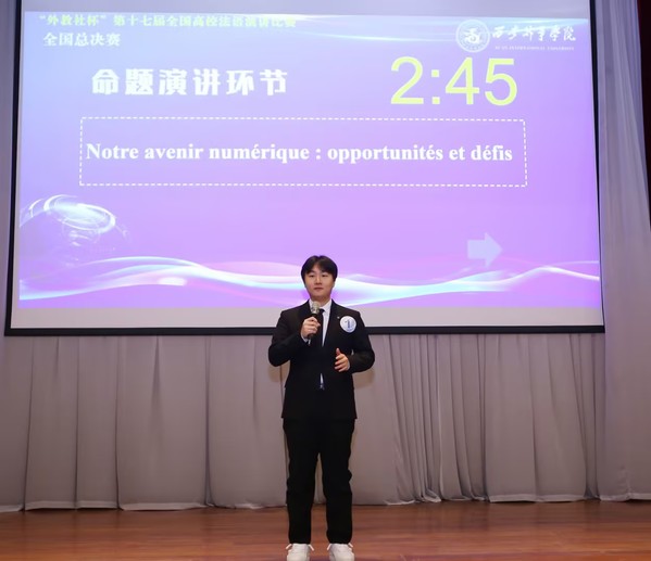 “外教社杯”全国高校法语演讲比赛是我国法语界极具权威性和影响力的学科竞赛之一,旨在全面考察与提升法语专业学生的语言应用能力、逻辑思维能力和综合素养。本届比赛竞争激烈,汇聚了来自全国各大赛区的顶尖选手。决赛分为命题演讲和即兴演讲两大环节,这不仅是对法语水平的极致考验,更是对知识储备与心理素质的综合挑战。