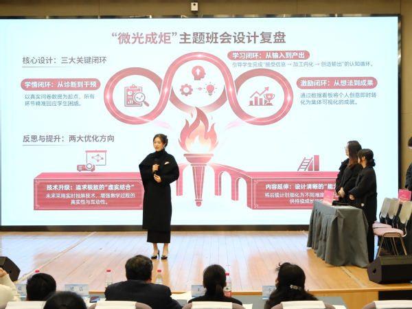 校党委副书记王科在总结讲话中表示,本次展示活动主旨鲜明、亮点纷呈,参赛辅导员通过精心策划与巧妙构思,聚焦专业特色,以小切口解读大道理,为我们呈现出一场场既有时代热度、思想深度,又有实践浓度、情感温度的主题班会。同时,面对当前新时代大学生思想活跃、需求多元的特点,他对全体辅导员提出三点希望:一要守牢思想阵地,让主题班会有“魂”;二要贴近学生实际,让主题班会有“情”;三要坚持创新赋能,让主题班会有“力”。学校将持续聚焦辅导员专业技能和核心素养提升,为辅导员队伍专业化、职业化发展提供多元化平台,助推学校学生思想政治工作高质量向前发展。